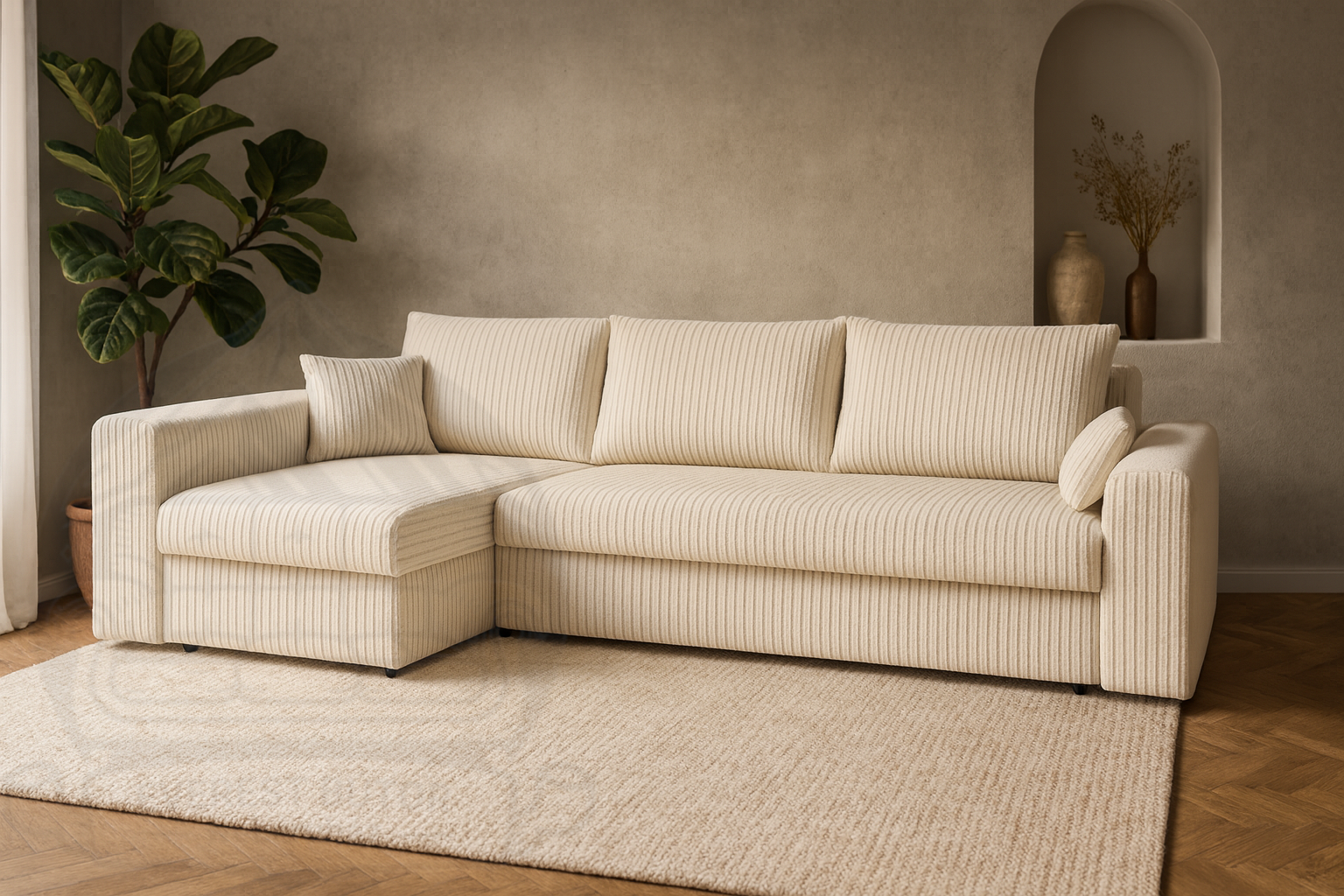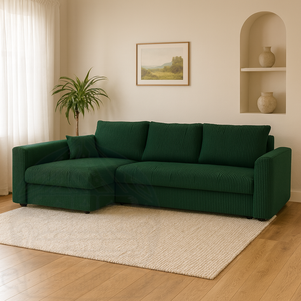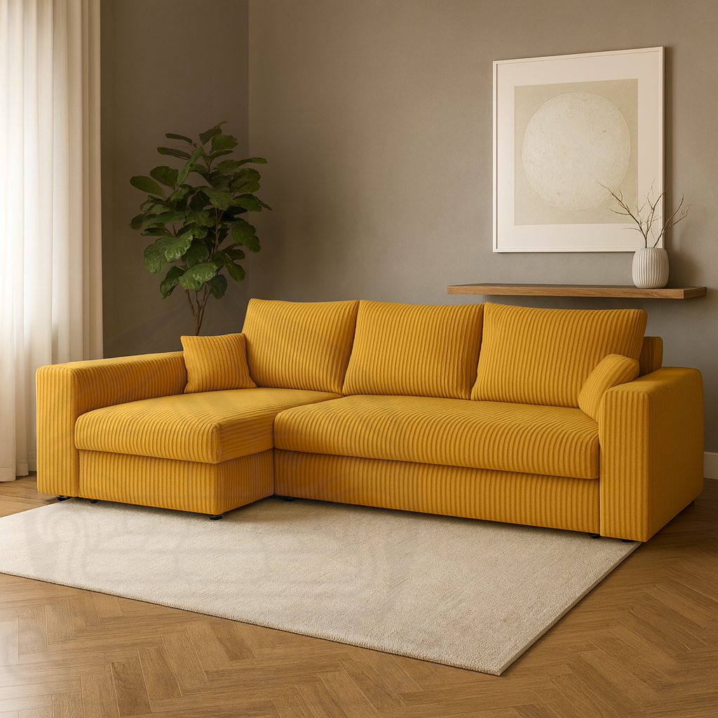 Ágyazható: A kanapé könnyedén kényelmes fekvőhellyé alakítható, ideális vendégek fogadására.
