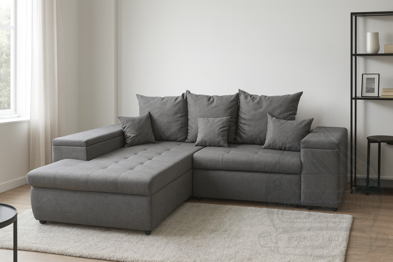 Ez a sarokülő kiváló választás azok számára, akik kényelmes, modern bútort keresnek praktikus tárolási lehetőségekkel.