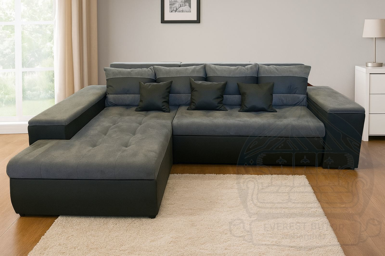 Ez az ágyazható és ágyneműtartós sarokülő a modern dizájnt ötvözi a funkcionalitással. A különleges, két színű lux szövet és az okos tárolási megoldások ideálissá teszik a mindennapi használatra, miközben kényelmes pihenést biztosítanak.