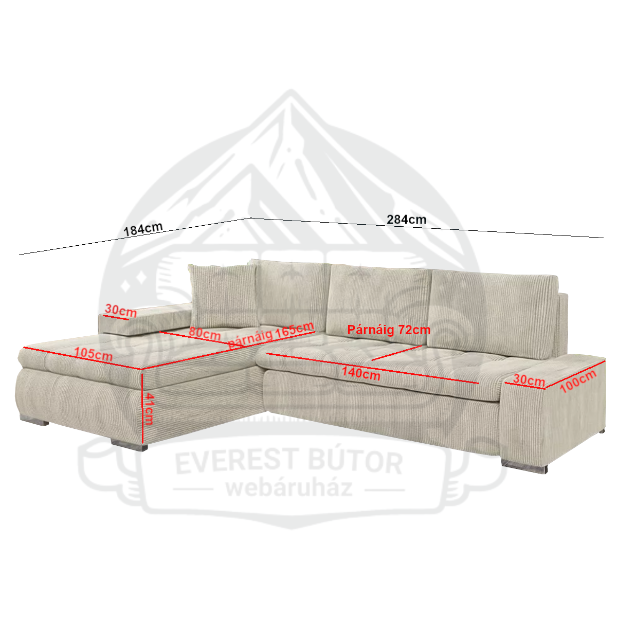 Ez a stílusos sarokülő prémium minőségű, társukort bársony szövettel készült, amely nemcsak elegáns megjelenést biztosít, hanem rendkívül kellemes tapintású is. A puha, selymes felület garantálja a maximális kényelmet, így tökéletes választás a pihenéshez vagy vendégfogadáshoz.