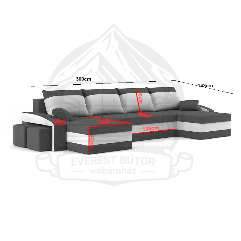 A Frea egy modern, praktikus és kényelmes U alakú ülőgarnitúra, amely tökéletes választás a nappalid központi darabjaként. Kialakítása nemcsak esztétikus, de funkcionális is, így ideális a családi együttlétekhez és a pihenéshez.